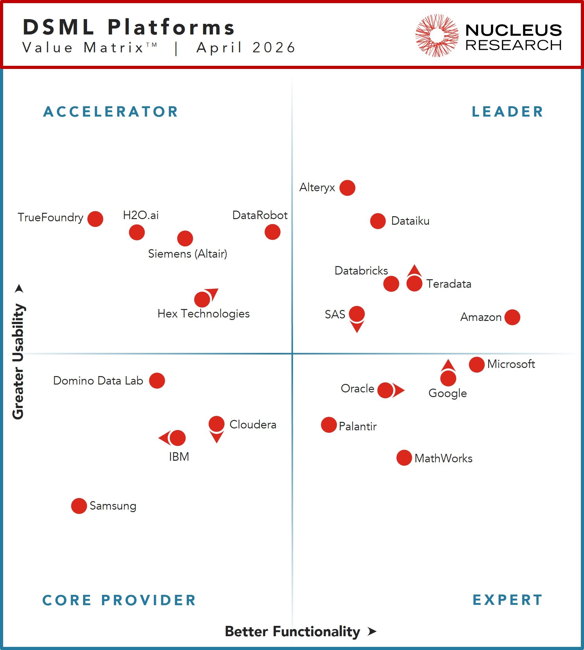This recognition is especially meaningful as the DSML market evolves beyond traditional model development. Nucleus frames the category around agentic AI, interoperability, governance, and autonomous multistep workflows, signaling a broader shift in what leadership looks like in the market. In our view, Teradata’s placement as a Leader reinforces the strength of our approach to supporting AI and machine learning at scale with the control, transparency, and enterprise readiness organizations require.
